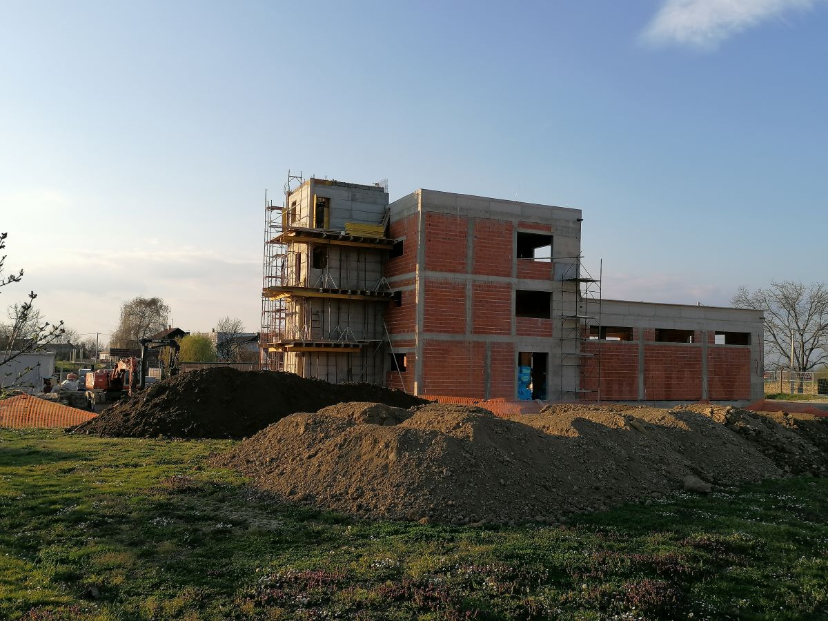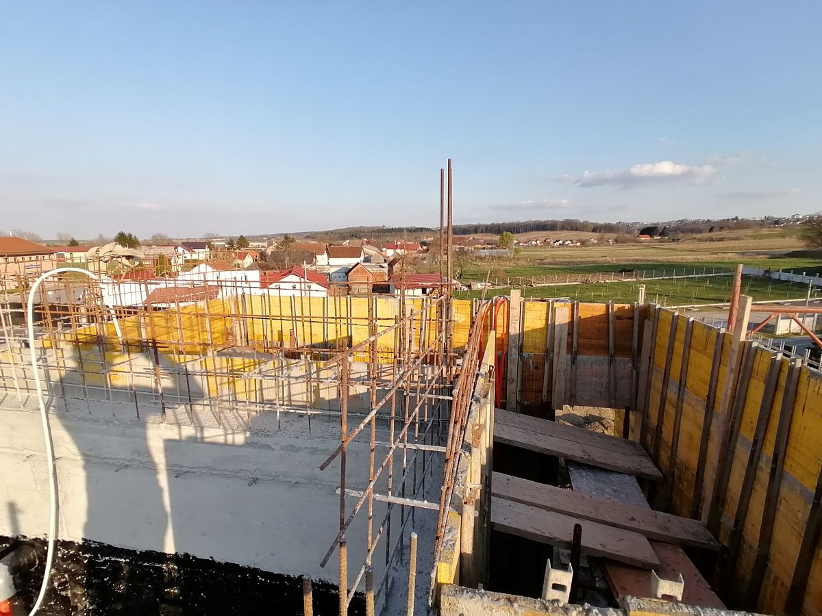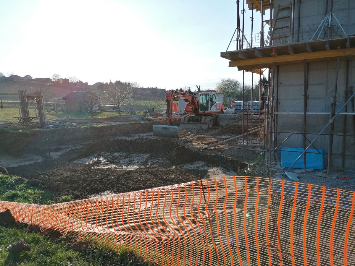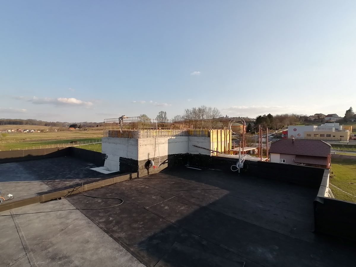 Nakon 8.mjeseci izgradnje Vatrogasni centar Kneginec polako dobiva nijanse vanjskog izgleda. Radovi na betoniranju stijena vatrogasnog tornja privode se kraju, a trenutno se vrši postavljanje hidroizolacije na ravni krov upravnog dijela objekta. Usporedno s ovim radovima odvija se i priprema za polaganje zemljanog kolektora toplinske pumpe koja će biti osnovni pokretač grijanja i hlađenja zgrade vatrogasnog centra. U fotogaleriji pogledajte tijek radova.