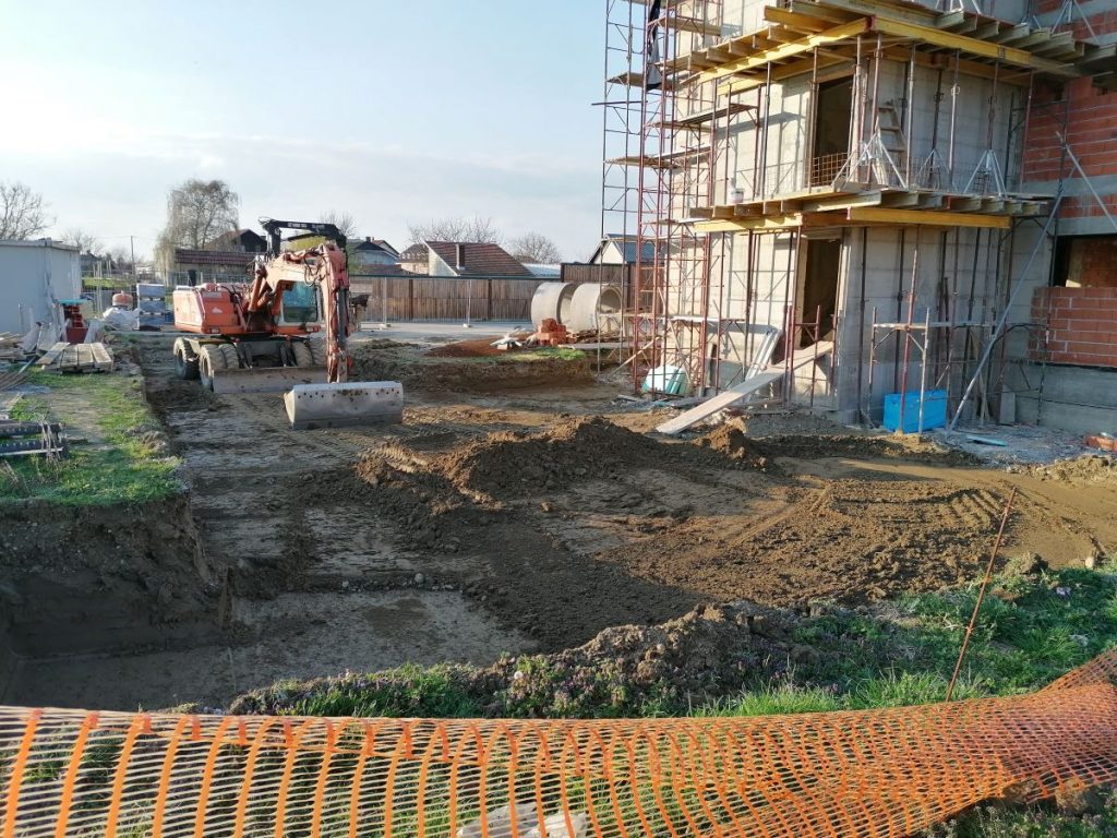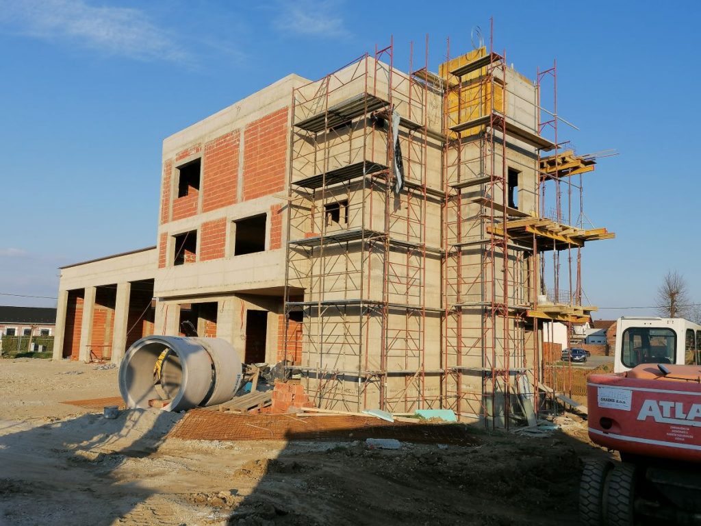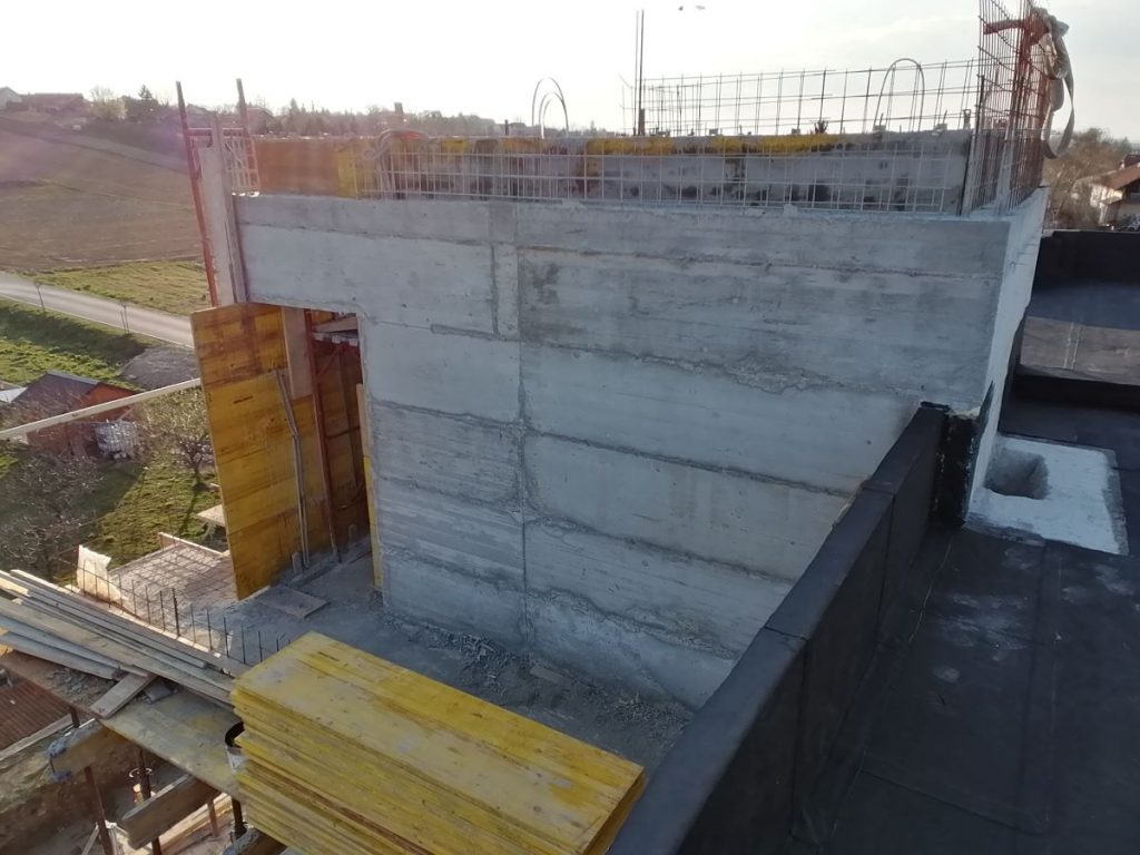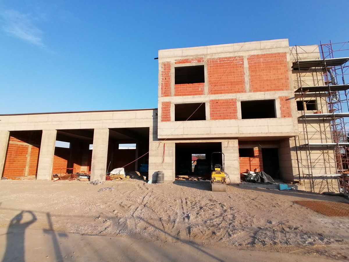 Nakon 8.mjeseci izgradnje Vatrogasni centar Kneginec polako dobiva nijanse vanjskog izgleda. Radovi na betoniranju stijena vatrogasnog tornja privode se kraju, a trenutno se vrši postavljanje hidroizolacije na ravni krov upravnog dijela objekta. Usporedno s ovim radovima odvija se i priprema za polaganje zemljanog kolektora toplinske pumpe koja će biti osnovni pokretač grijanja i hlađenja zgrade vatrogasnog centra. U fotogaleriji pogledajte tijek radova.