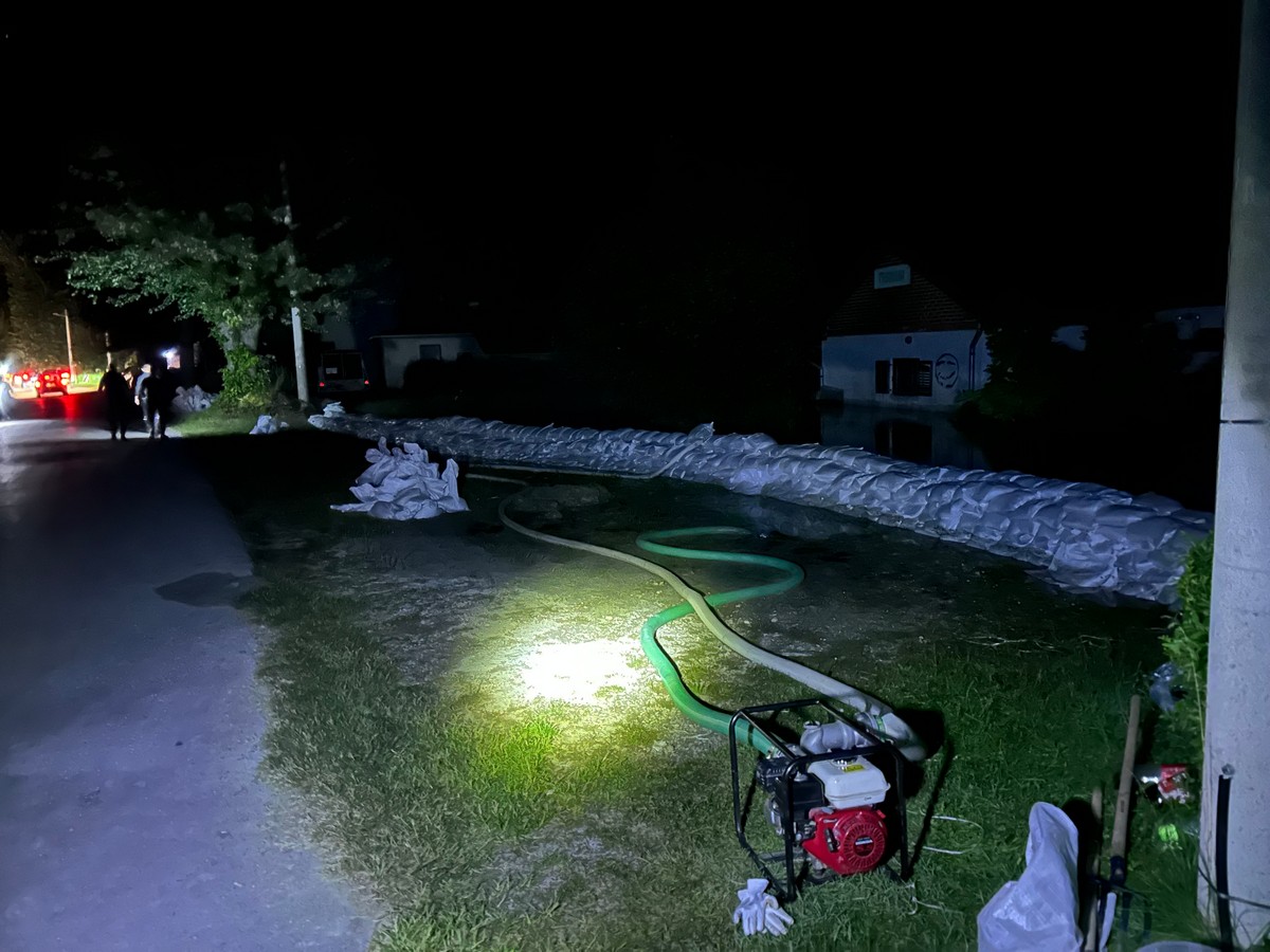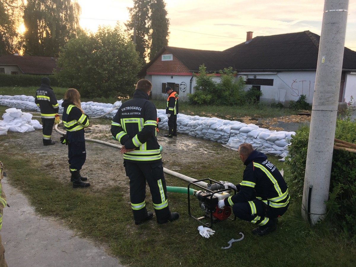 U večernjim satima u ispomoć nam se pridružuju kolege iz DVD-a Marija Bistrica i Pregrada te zajedno cijelu noć provodimo na terenu vršeći ispumpavanje vode, ali i ophodnju i provjeru zečjeg nasipa kako bi spriječili prodor poplavnih voda.