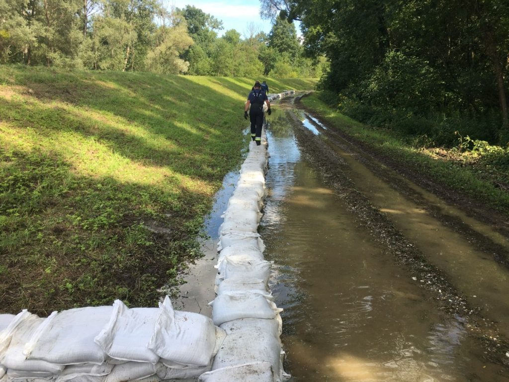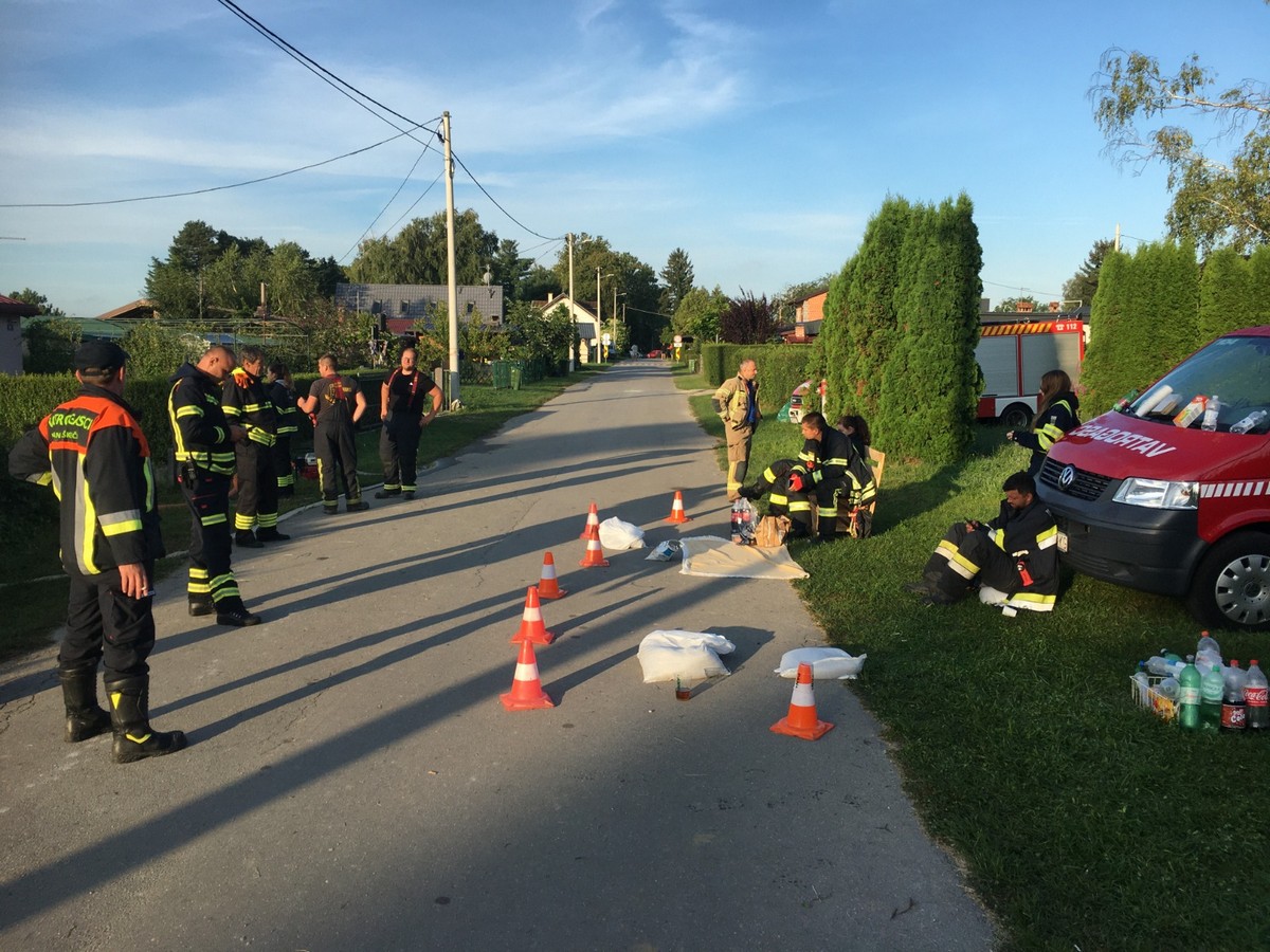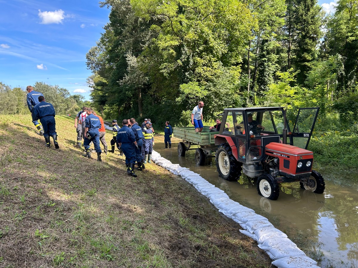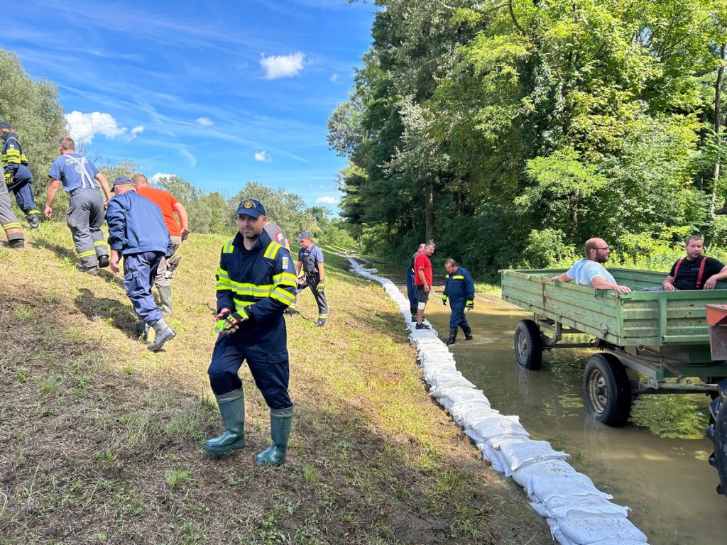 Dolaskom na teren, zajedno s operativnim vatrogascima iz Općine Legrad vršimo izgradnju zečjeg nasipa uz nasip rijeke Drave na kojem su uočena kapilarna propuštanja.U poslijepodnevnim satima upućeni smo u vikend naselje uz jezero Šoderica gdje vršimo utvrđivanje nasipa, dogradnju postojećih te ispumpavanje vode.