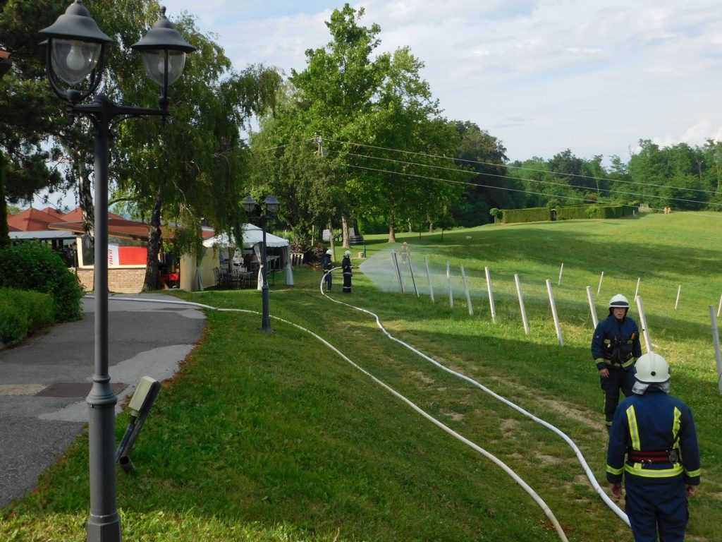 U ponedjeljak 13. lipnja 2016. godine u 17:33 sati na Varaždin Bregu, Banjšćina 45, na objektu restorana Zlatne gorice, Vatrogasna zajednica Općine Gornji Kneginec i DVD Varaždinske Toplice održali su zajedničku javno-pokaznu vježbu s pretpostavkom da je došlo do požara kuhinje u prizemlju objekta te se požar preko okolnih gorivih tvari prenio na kat i krovište objekta. Taktičkim nastupom operativnih vatrogasaca pristupilo se pretraživanju unutrašnjosti objekta, spašavanju osoba uporabom autoljestvi, gašenju požara sa unutarnjom i vanjskom navalom, te štićenje objekta od visoke temperature. Na javno pokaznoj vježbi sudjelovalo je 37 operativnih vatrogasaca. Tom prilikom dobrovoljna vatrogasna društva s područja Općine Gornji Kneginec i DVD Varaždinske Toplice prezentirali su operativnu spremnost vatrogasaca te provjeru tehničke ispravnosti vatrogasne opreme i vozila. Javno pokaznoj vježbi bio je nazočan i načelnik Stožera za zaštitu i spašavanje Općine Gornji Kneginec, zamjenik općinskog načelnika Robert Đuranec, koji je vježbu ocijenio vrlo uspješnom i zahvalio se vatrogascima na dosadašnjim aktivnostima u spašavanju ljudi i imovine.