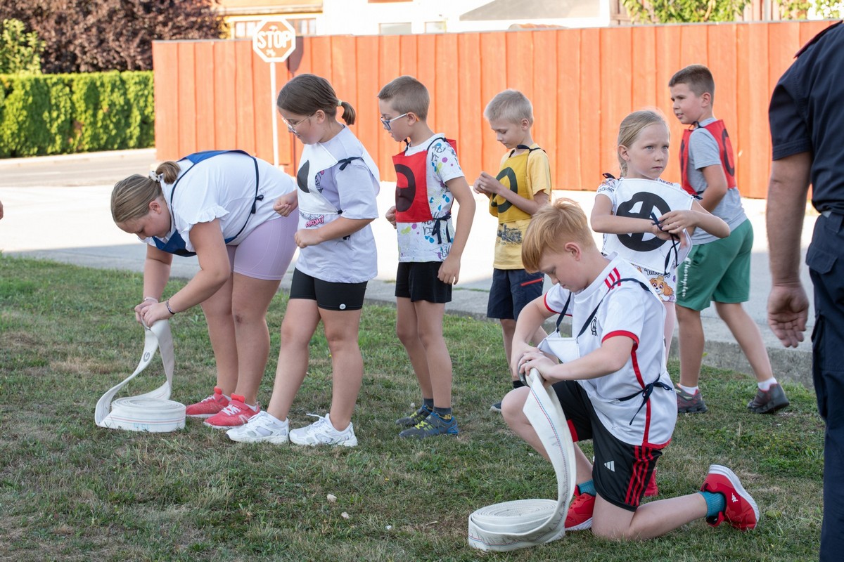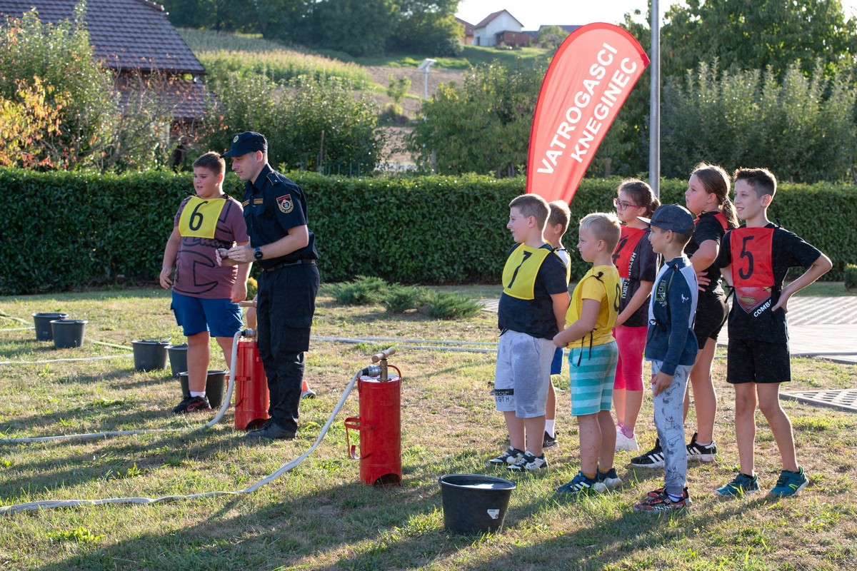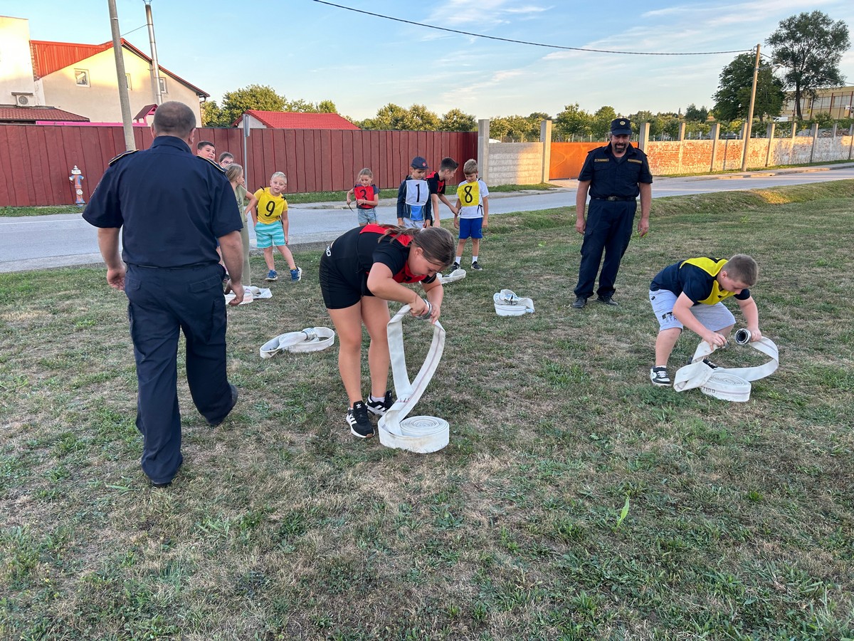 Članovi DVD-a Donji Kneginec upoznavali su djecu s pripremom i izvođenjem vatrogasnih vježbi na natjecanjima, vježbe s brentačama.