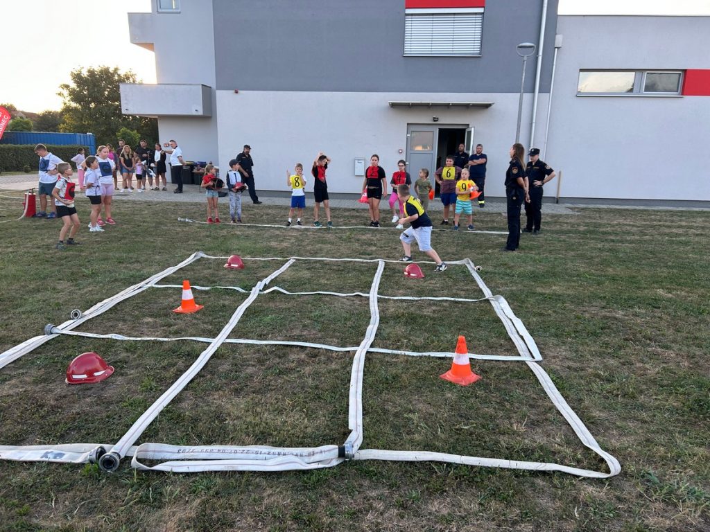 Na vatrogasnim igrama imali smo četiri staze za igru te dva poligona na kojima su djeca bila upoznata sa stazama za vatrogasna natjecanja djece.