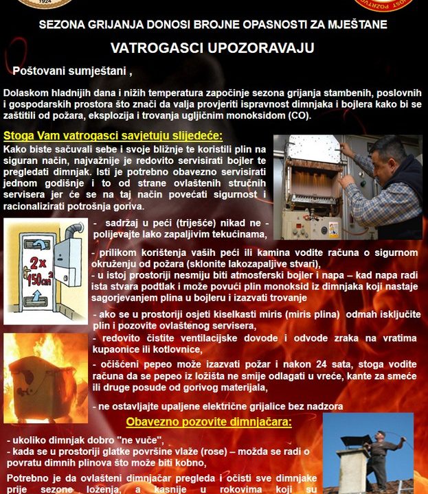SEZONA GRIJANJA DONOSI BROJNE OPASNOSTI ZA MJEŠTANE