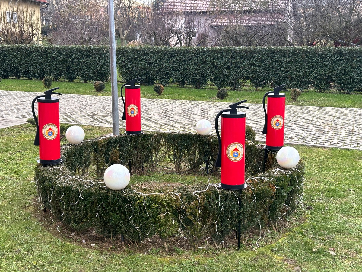 Prije paljenja prve svijeće na adventskom vijencu ispred Vatrogasnog centra Kneginec članovi društva obišli su grob našeg preminulog predsjednika i zapalili lampione.