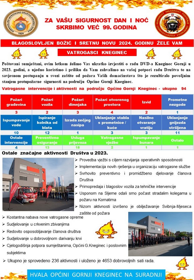 Ovim putem DVD Kneginec Gornji upućuje veliku zahvalu mještanima Gornjeg Kneginca, Malog i Dugog Vrha na financijskoj potpori koju čete pružiti uplatom donacije i time podržati daljnji rad društva.
