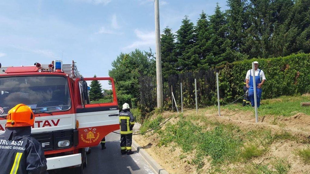 U srijedu, 31.05.2017. godine u 14:13 zaprimamo dojavu od JVP Varaždin o požaru otvorenog prostora na Varaždin Bregu Koradovica 66. Na intervenciju smo izašli sa navalnim i kobi vozilom i 6 operativna vatrogasca. Dolaskom na mjesto događaja utvrđujemo da se radi o požaru čepresa u dužini od 10 metara. Do požara je došlo zbog pada vara na čemprese usljed zavarivanja metalne ulične ograde.