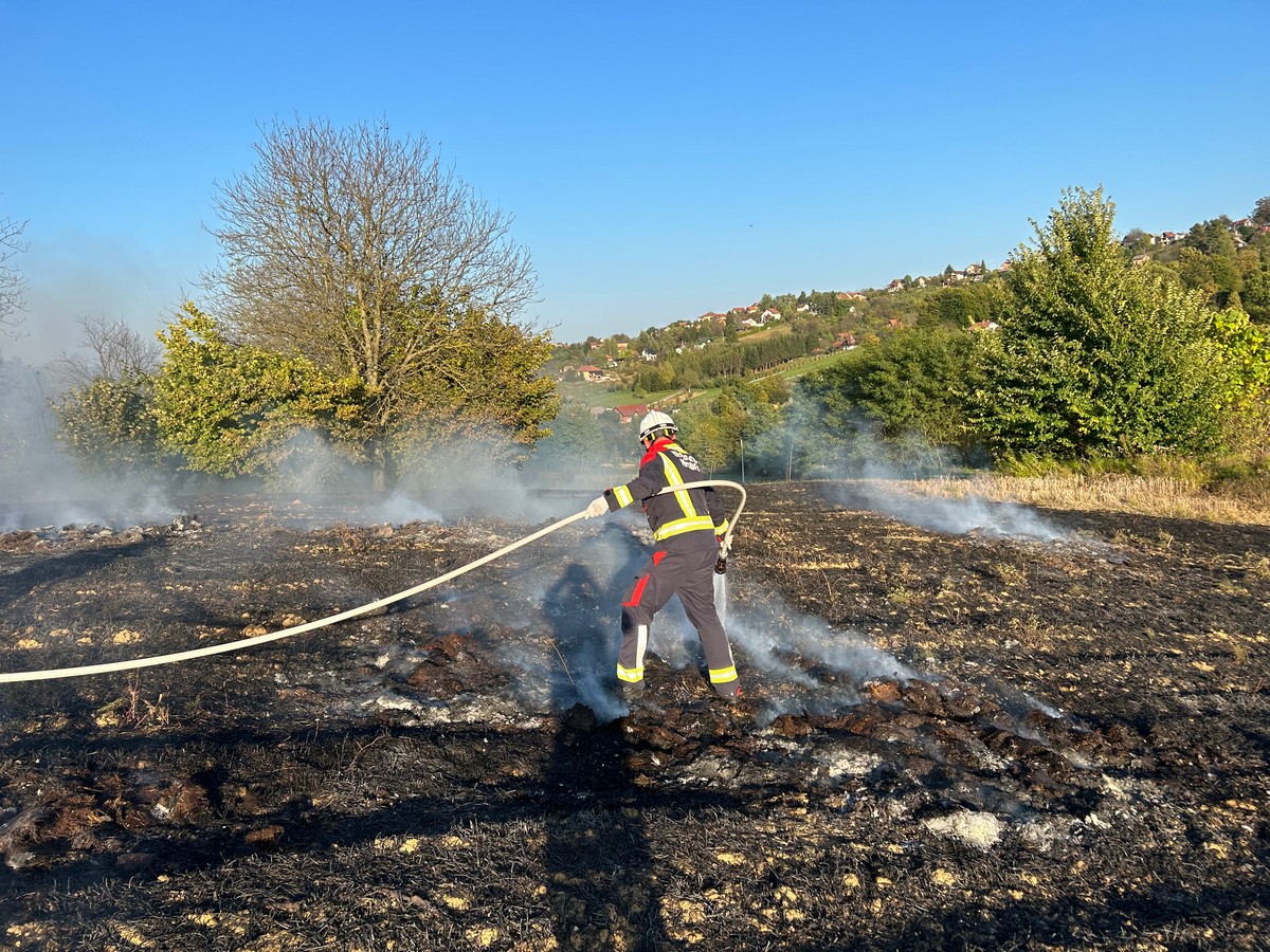 Dana, 14. listopada 2023. godine u 16:38 sati operativni članovi DVD-a Kneginec Gornji zaprimili su dojavu VOC-a JVP Varaždin o nastanku požara otvorenog prostora. Na mjesto događaja izlazimo s navalnim vozilom te 6 operativnih vatrogasaca. Dolaskom na lokaciju utvrđujemo da se radi o požaru trave i niskog raslinja, pristupamo gašenju istih pomoću „D“ mlaza. Na intervenciji priključuju nam se i članovi DVD-a Varaždinbreg. Intervenciju završavamo u 17:30 sati.