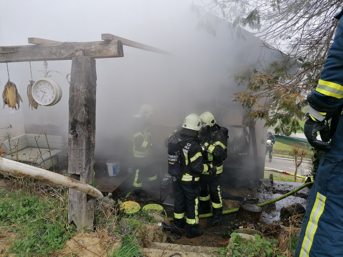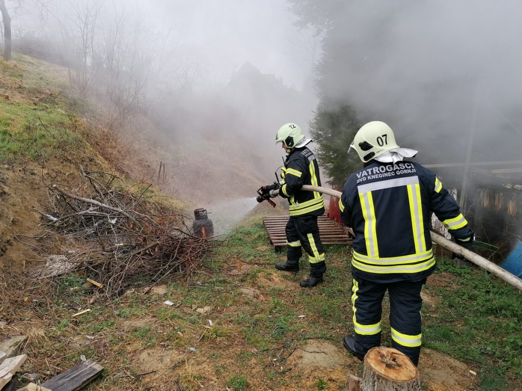 Dana, 14.03.2020. godine u 09:10 sati operativni članovi DVD-a Kneginec Gornji zaprimili su dojavu VOC-a JVP Varaždin o nastanku požara vikend kuće na Varaždin Bregu, Mali Vrh 227. Na mjesto događaja izlazimo s navalnim i kombi vozilom te 10 operativnih vatrogasaca. Dolaskom na mjesto događaja, utvrđujemo da se radi o razbuktaloj fazi požara koji je zahvatio unutrašnjost objekta i dio krovišta. Prilikom pristupanja gašenju mještanin nas obaviještava da se unutra nalazi plinska boca. Pronalazimo na vrijeme narečenu bocu u prostoru kuhinje te istu iznosimo na dvorište i hladimo je jer se duže vrijeme nalazila u požaru.U gašenju požara vikend kuće s jednim C mlazom sudjelovali su i članovi DVD-a Varaždin Breg koji su ujedno i izvršili otpajanje električnih vodova kuće zahvaćene požarom na stupu HEP-a. Intervenciju završavamo u 11:08 sati.