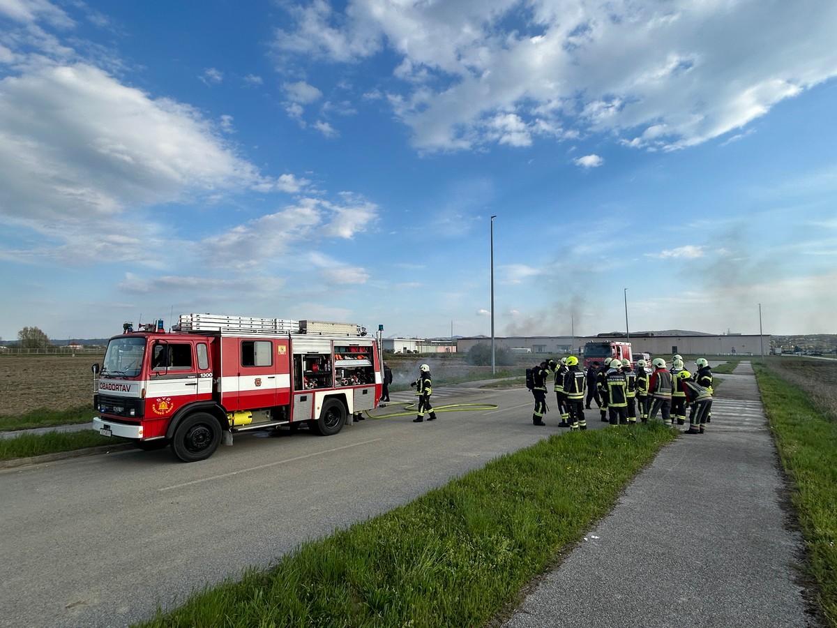 U 17:29 sati zaprimili smo dojavu od VOC-a JVP Varaždin o nastanku požara na kamiona u poduzetničkoj zoni Kneginec. Na mjesto događaja izašli smo s navalnim vozilom, autocisternom i kombi vozilom te 11 operativnih vatrogasaca koji su bili potpuno opremljeni osobnom zaštitnom opremom, dok je navalna grupa bila opremljena i izolacijskim aparatima. Na mjesto događaja stigli smo u roku od 7 minuta, što je ispod obveznih 15 minuta propisanih vatrogasnim pravilnikom i time pokazali sposobnost vatrogasne postrojbe da kvalitetno reagira na određeni izvanredni događaj u minimalnom vremenskom roku.