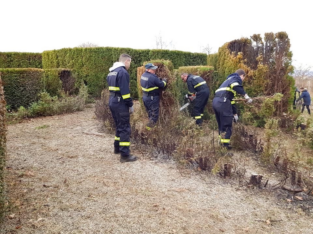 Na javni poziv vlasnika Zlatnih gorica koji je organizirao ORA (ozbiljna radna akcija) pristupilo se sanaciji labirinta koji je izgorio u ponedjeljak. Na akciju smo se odazvali sa sedam članova kako bi sa ostalim mještanima pomogli u sanaciji labirinta.