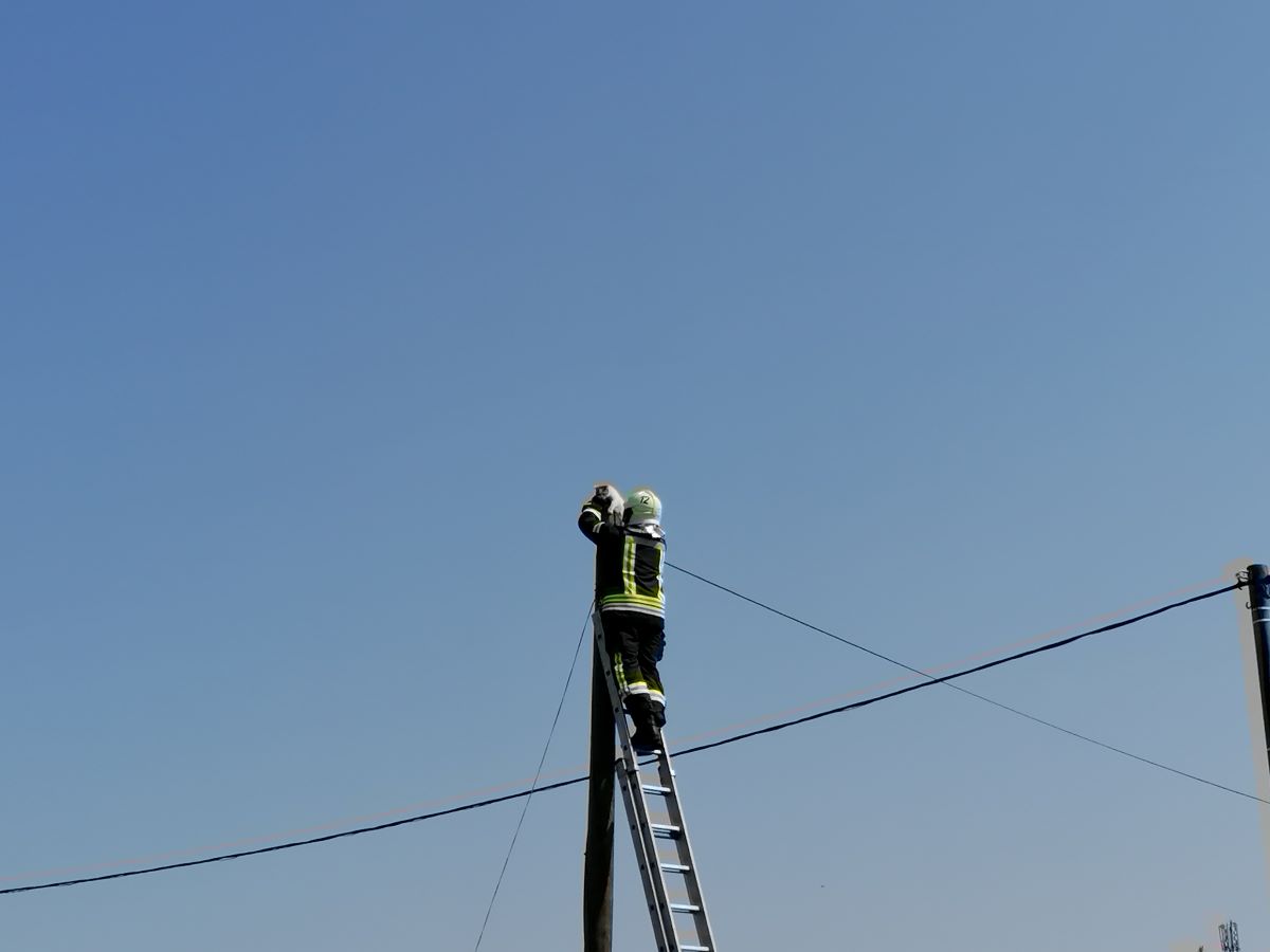 Dana, 03.04.2020. godine u 11:46 sati operativni članovi DVD-a Kneginec Gornji zaprimili su dojavu da je potrebno spustiti mačku sa stupa u Turčinu Kolodvorska 16. Na intervenciju je s NV upućeno 7 operativnih vatrogasaca dok u pripremi ostaju 3 operativca. Po dolasku na mjesto događaja utvrdili su da se uplašena mačka nalazi visoko na stupu. Uporabom ljestava vatrogasci su mačku živu i zdravu spustili na tlo. Intervencija završena u 12:11 sati.