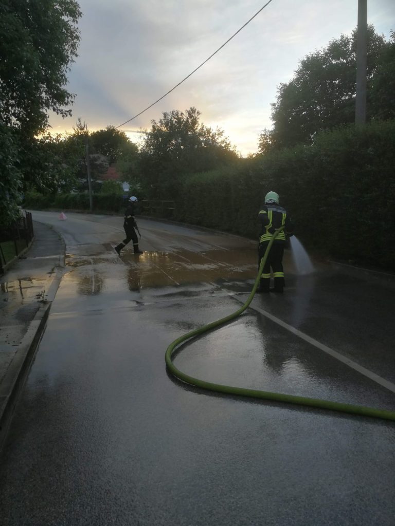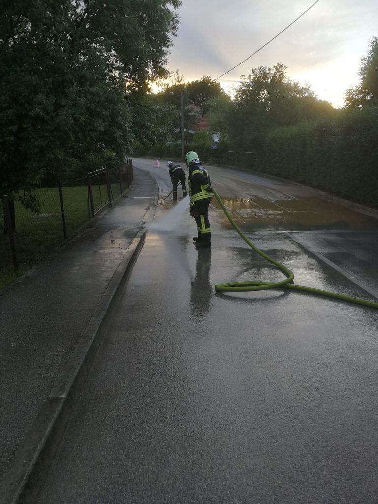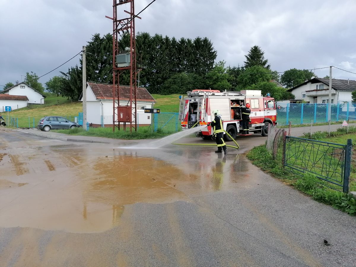 Dana 03.06.2020. u 19:15 sati operativni članovi DVD-a Kneginec Gornji dobivamo dojavu o potrebi ispiranja blata s kolnika i korita izvora pitke vode Korečkovec u Knegincu Gornjem,Tina Ujevića 9. Nakon dolaska na prvu intervenciju ubrzo dobivami još jednu, a radilo se o ispiranju blata s kolnika na raskrižju Knegingradske ulice i ulice Halić. Na intervenciju izlazimo s navalnim vozilom i 3 operativna vatrogasca. Intervenciju završavamo u 20:58 sati.