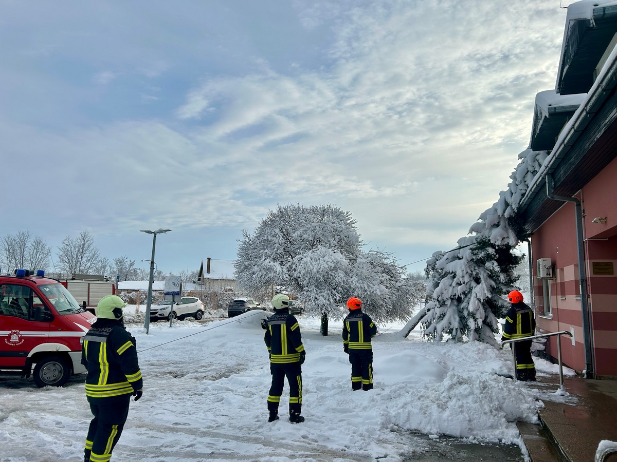 Dana 21. veljače 2026. godine u 08:22 sati operativni članovi DVD-a Kneginec Gornji zaprimili su dojavu od VOC-a JVP Varaždin o potrebi uklanjanja stabla koje se srušilo na krovište objekta. Na intervenciju smo izašli s tehničkim i navalnim vozilom te osam operativnih vatrogasaca. Po dolasku na mjesto događaja osigurali smo područje intervencije te uporabom vitla i motorne pile uklonili stablo s krovišta objekta.
