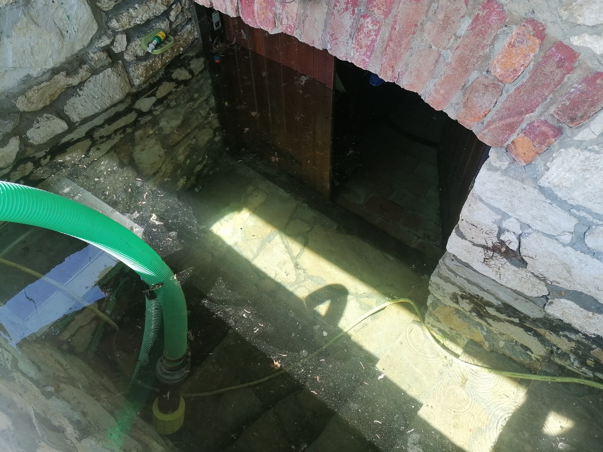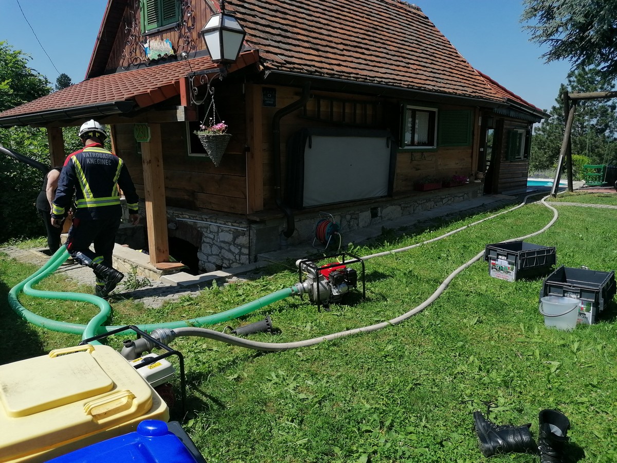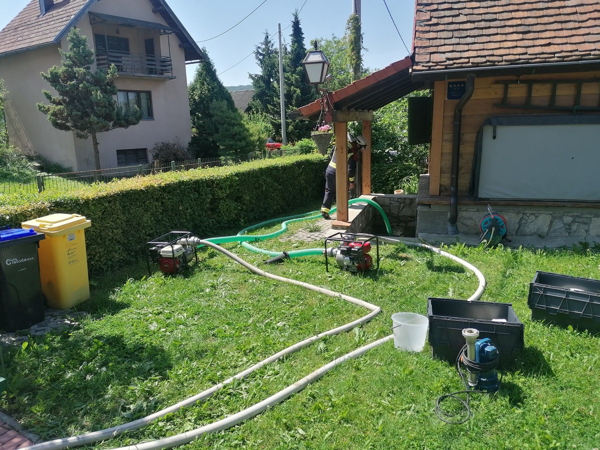 Dolaskom na mjesto događaja vršimo ispumpavanje vode pomoću dvije motorne pumpe iz podruma i šahta gdje se nalazi vodomjer sa glavnim ventilom. Ubrzo potom otkrivamo da je došlo do puknuća vodovodne slavine u podrumu te stoga zatvaramo glavni ventil u šahtu i nastavljamo  ispumpavati vodu iz podruma.  Intervenciju završavamo u 11:45 sati.