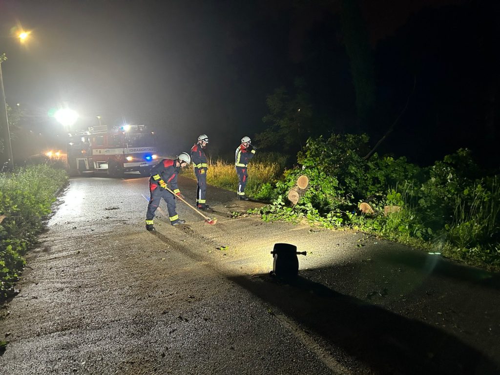 Po dolasku na mjesto događaja pristupamo osiguranju mjesta događaja te uporabom motorne pile uklanjamo stablo koje se srušilo na prometnicu i električni vod od javne rasvjete. Na intervenciji su sudjelovali i policijski službenici PU Varaždinske. Intervenciju završavamo u 22:50 sati.