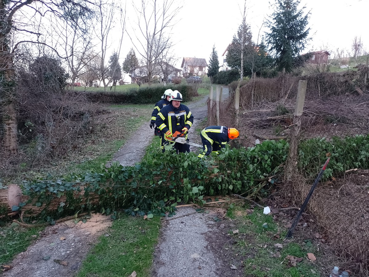 Dana, 04.veljače 2023. godine u 16:22 sati operativni članovi DVD-a Kneginec Gornji zaprimili su dojavu VOC-a JVP Varaždin o potrebi uklanjanja stabla koje se srušilo na prometnicu u Varaždin Bregu, Mali Vrh 109. Na intervenciju izlazimo s navalnim vozilom i 6 operativnih vatrogasaca. Po dolasku na mjesto događaja pristupamo osiguranju mjesta događaja te uporabom motorne pile uklanjamo stablo koje se srušilo na prometnicu. Intervenciju završavamo u 17:05 sati.