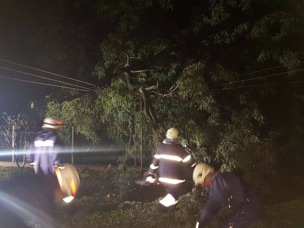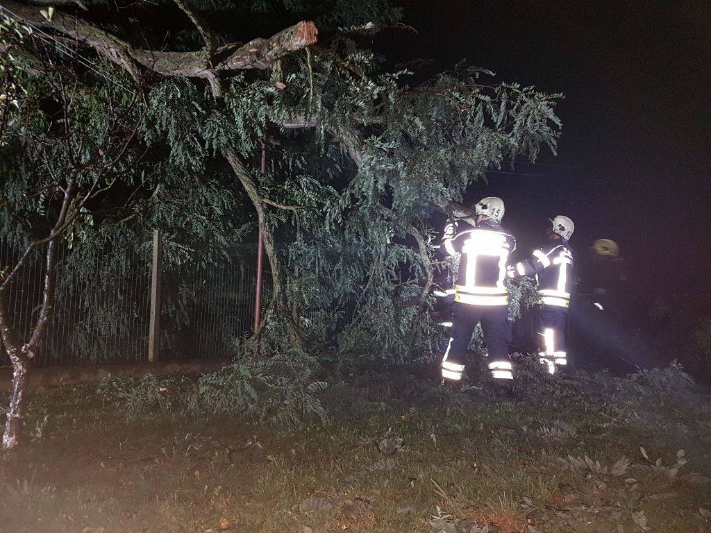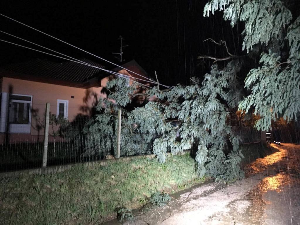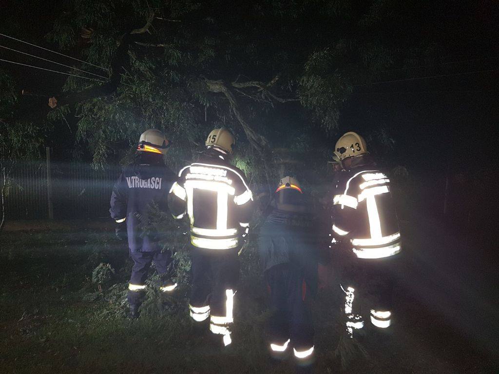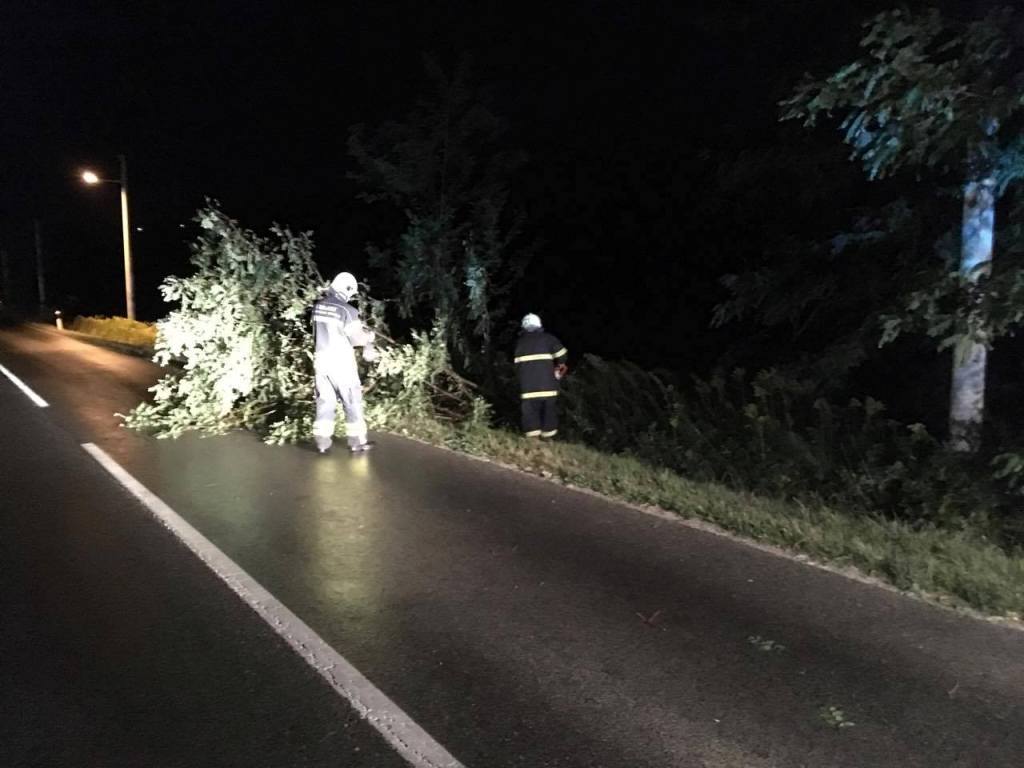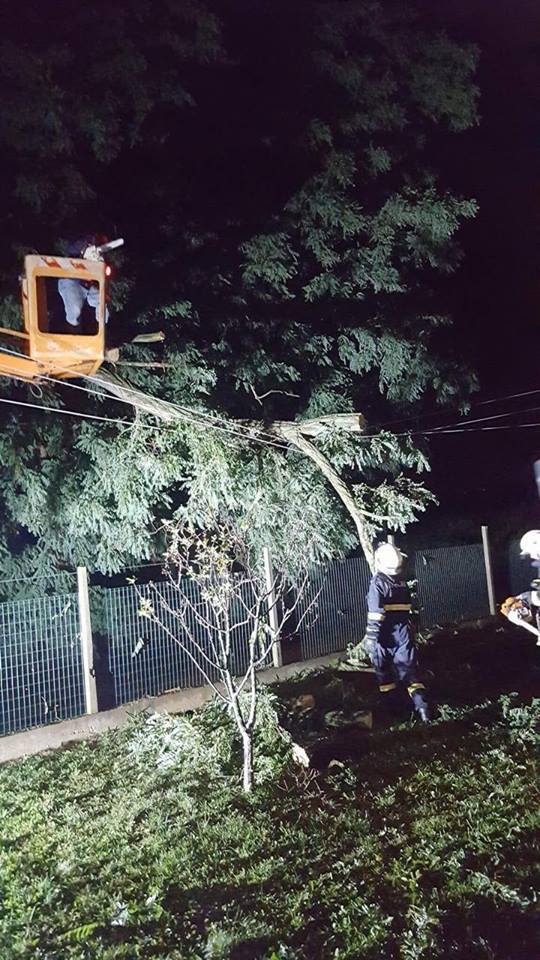 U četvrtak, 10. kolovoza 2017. godine područje Općine Gornji Kneginec zahvatilo je olujno nevrijeme prilikom čega smo intervenirali u nekoliko navrata. Prvu dojavu dobili smo u 20:30 sati o tehničkoj intervenciji rušenja stabla na žice dalekovoda u Gornjem Knegincu, ulica Šmičkovec. Dolaskom na mjesto intervencije vršimo osiguranje na sigurnoj udaljenosti, zbog mogućeg strujnog udara, do dolaska dežurne ekipe Elektre Varaždin. U međuvremenu dobivamo dojavu o rušenju stabla na prometnicu u ulici Banjšćina na Varaždin Bregu, pa troje operativnih vatrogasaca odlazili raskrčiti prometnicu dok šestero ostaje na osiguranju. Uz pomoć motorne pile režemo drvo na prometnici te istu vraćamo u nesmetan promet. Odlaskom sa Varaždin Brega odlazimo do Topličke ulice u Gornjem Knegincu gdje također čistimo prometnicu od srušenog drva. Povratkom na prvu intervenciju, nakon što je isključena struja, prilazimo rezanju stabla te uz pomoć dežurne ekipe Elektre Varaždin oslobađamo žice dalekovoda i same prometnice. Na intervencijama je sudjelovalo ukupno 9 operativnih vatrogasaca, a iste završavamo u 22:40 sati.
