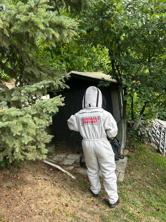 Dana 11. kolovoza 2025. zaprimili smo dojavu o prisutnosti gnijezda stršljena. Na intervenciju smo izašli s kombi vozilom i tri operativna vatrogasca. Po dolasku na mjesto događaja izvršen je izvid, te je utvrđena točna lokacija gnijezda. Nakon procjene sigurnosnih uvjeta i potencijalnih rizika, pristupili smo uklanjanju gnijezda uz korištenje odgovarajuće zaštitne opreme i sredstava namijenjenih za takvu vrstu intervencije.
