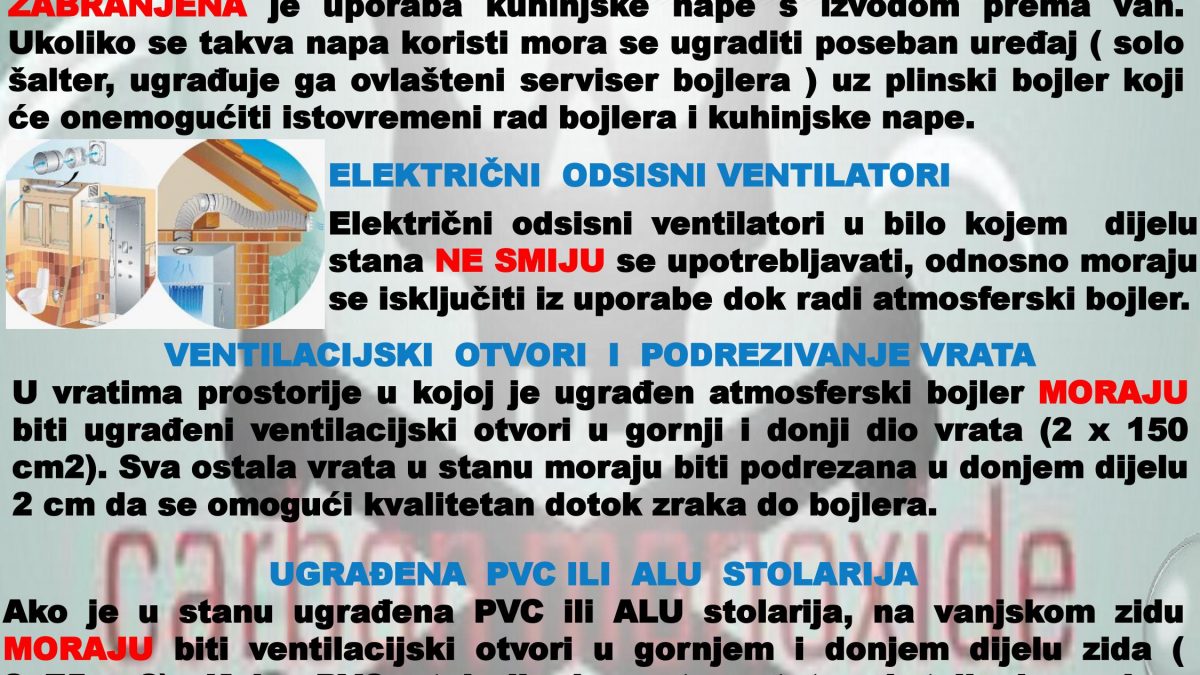 KAKO SE ZAŠTITITI OD TROVANJA UGLJIČNIM MONOKSIDOM PROČITAJTE U LETKU.